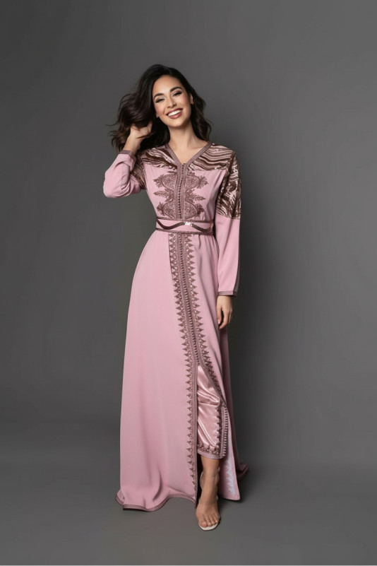 فستان نسائي راقٍ باللون الوردي الغامق (روز)، يتميز بتصميم أنثوي أنيق مع تفاصيل ناعمة تبرز جمال القَصّة وتمنح الإطلالة لمسة فخامة ورقي. مصنوع من قماش عالي الجودة بانسيابية مريحة، مناسب للسهرات، المناسبات الخاصة، واللقاءات الراقية. اختيار مثالي لإطلالة أنيقة وناعمة في آنٍ واحد